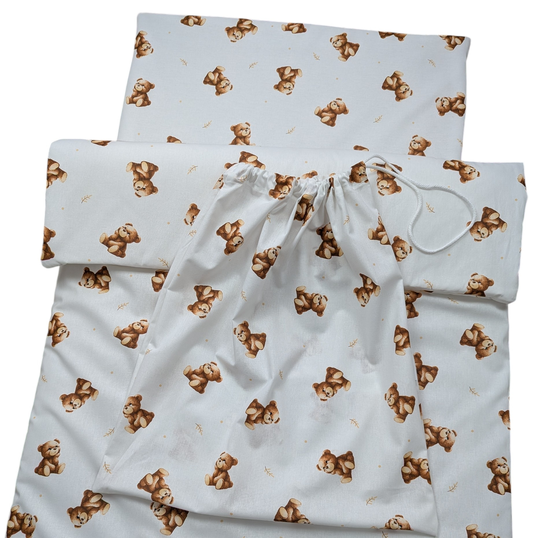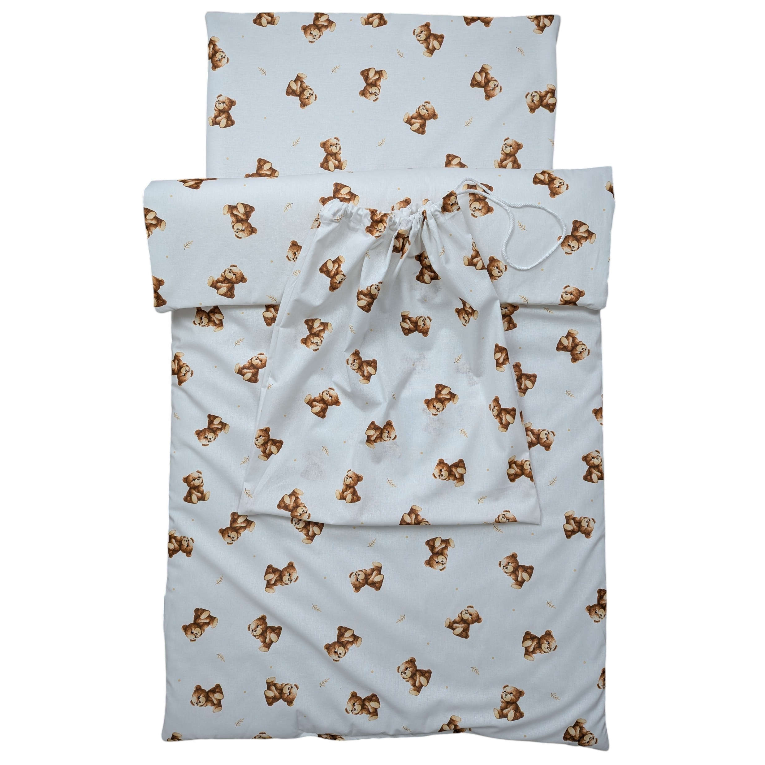 - Praktyczny worek w zestawie: Wykonany z tej samej wysokogatunkowej bawełny, ułatwia przechowywanie pościeli oraz higieniczny transport między domem a placówką. Cały komplet mieści się w nim bez trudu.