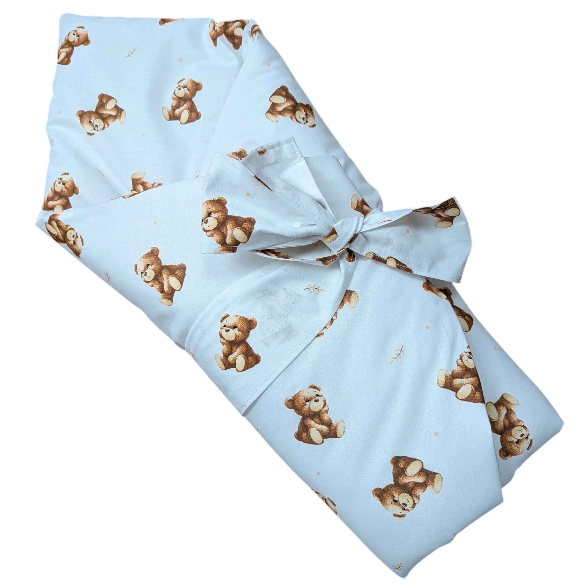 - Osobny pasek (Nieprzyszyty): Pasek do wiązania nie jest przyszyty na stałe. Dzięki temu możesz samodzielnie decydować o stopniu otulenia malucha, a po rozłożeniu rożka do formy kołderki, pasek nie przeszkadza i nie uwiera dziecka.